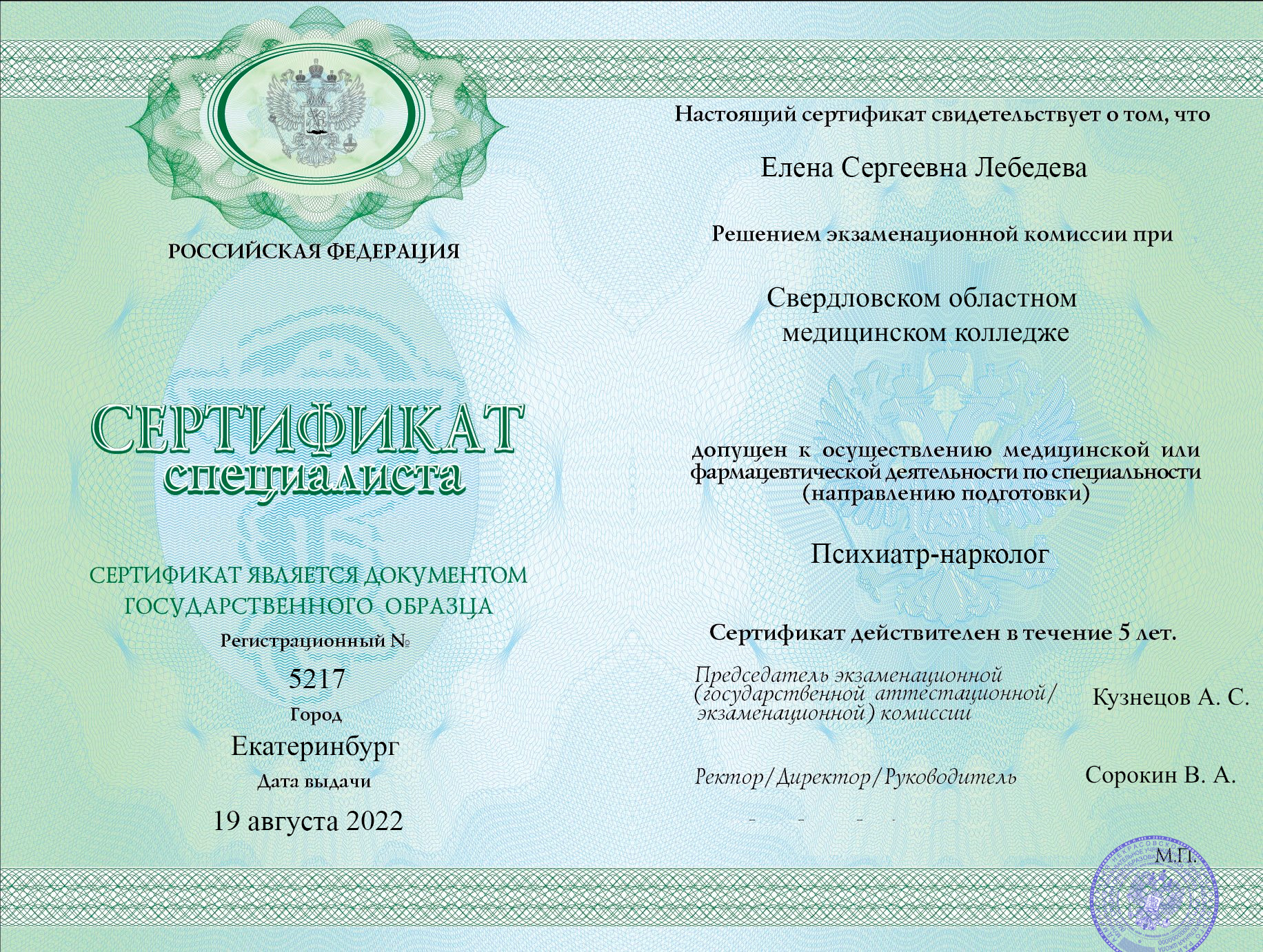Елена Сергеевна Лебедева врач нарколог клиники доктора Стукаловой в Калаче-на-Дону